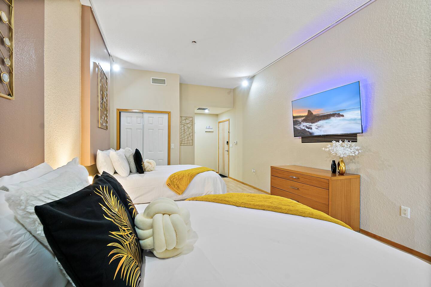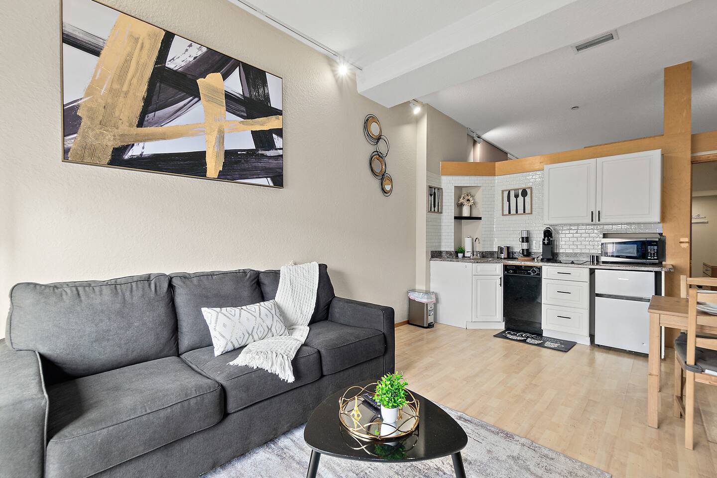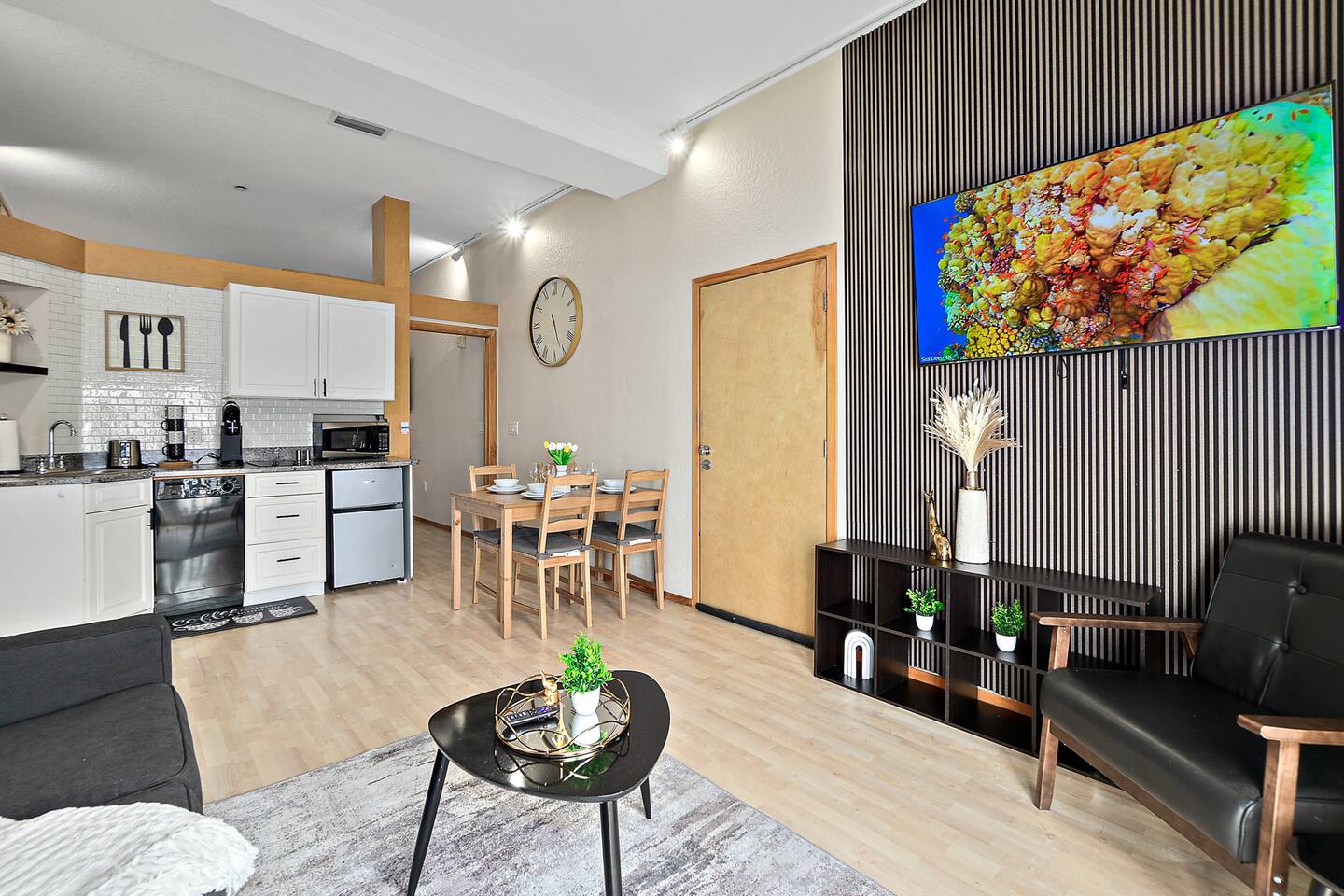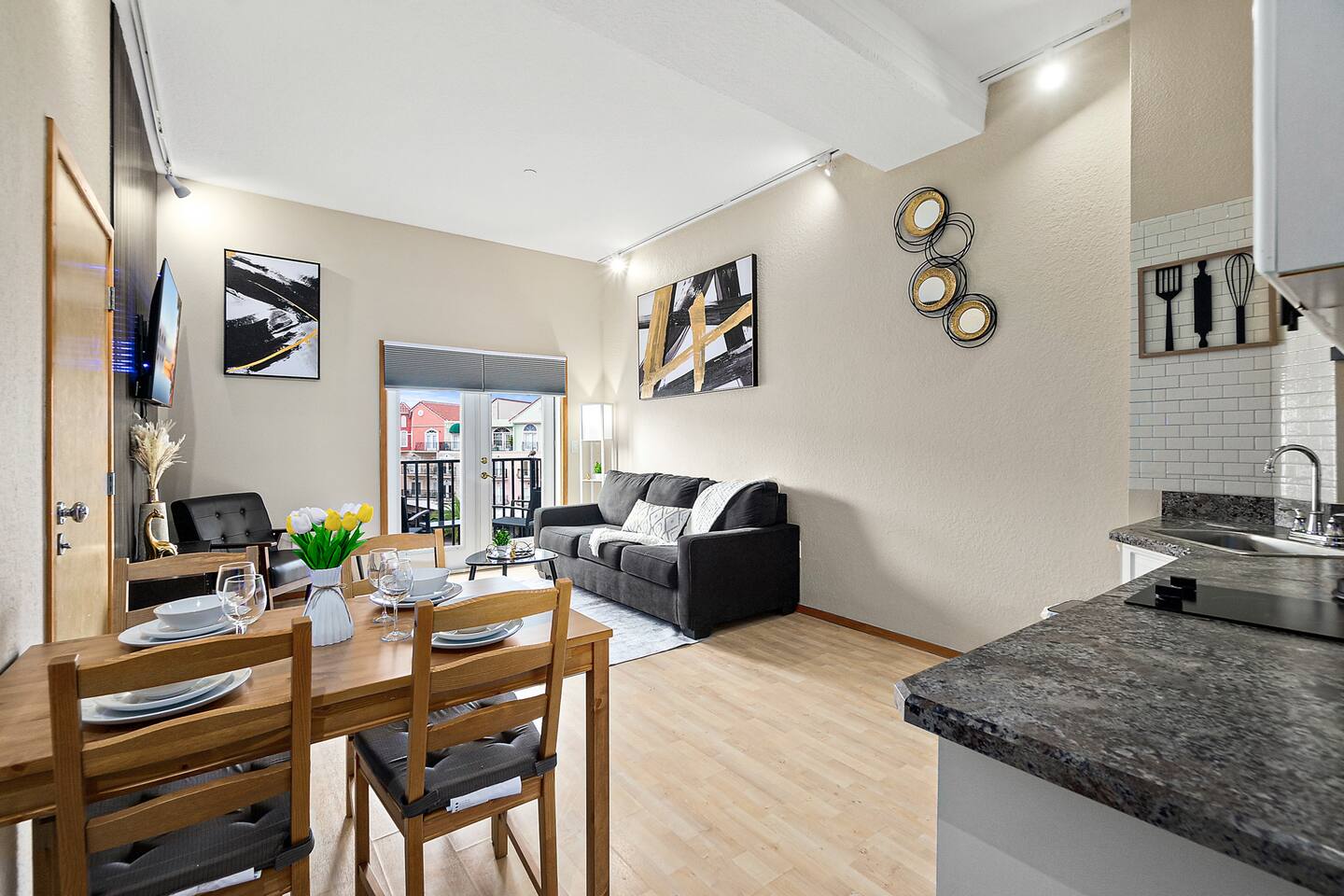 With all the comforts of home, a lively community atmosphere, and easy access to coastal activities, this Palm Coast condo is ideal for couples and business travelers looking to experience a Florida escape! Bedroom: 2 Queen Beds and Queen Sofa Bed in Living area COMMUNITY AMENITIES: Courtyard w/ restaurants, shops, live music & events MAIN CONDO FEATURES: Private balcony w/ seating, Two Roku Smart TV, beach chairs, humidifier, dining table KITCHEN: Fully equipped, coffee maker, dishware/flatware GENERAL: Central air conditioning & heating, complimentary toiletries, linens/towels, beach towels, washer/dryer (shared with other units), hair dryer, iron/ironing board, laundry detergent, trash bags/paper towels FAQ: Step-free access (elevator to 4th -floor unit) PARKING: Free Dedicated underground parking close to elevator, additional outside parking (first-come, first-served) Feel free to message us to inquire about our early check-in and check-out options.