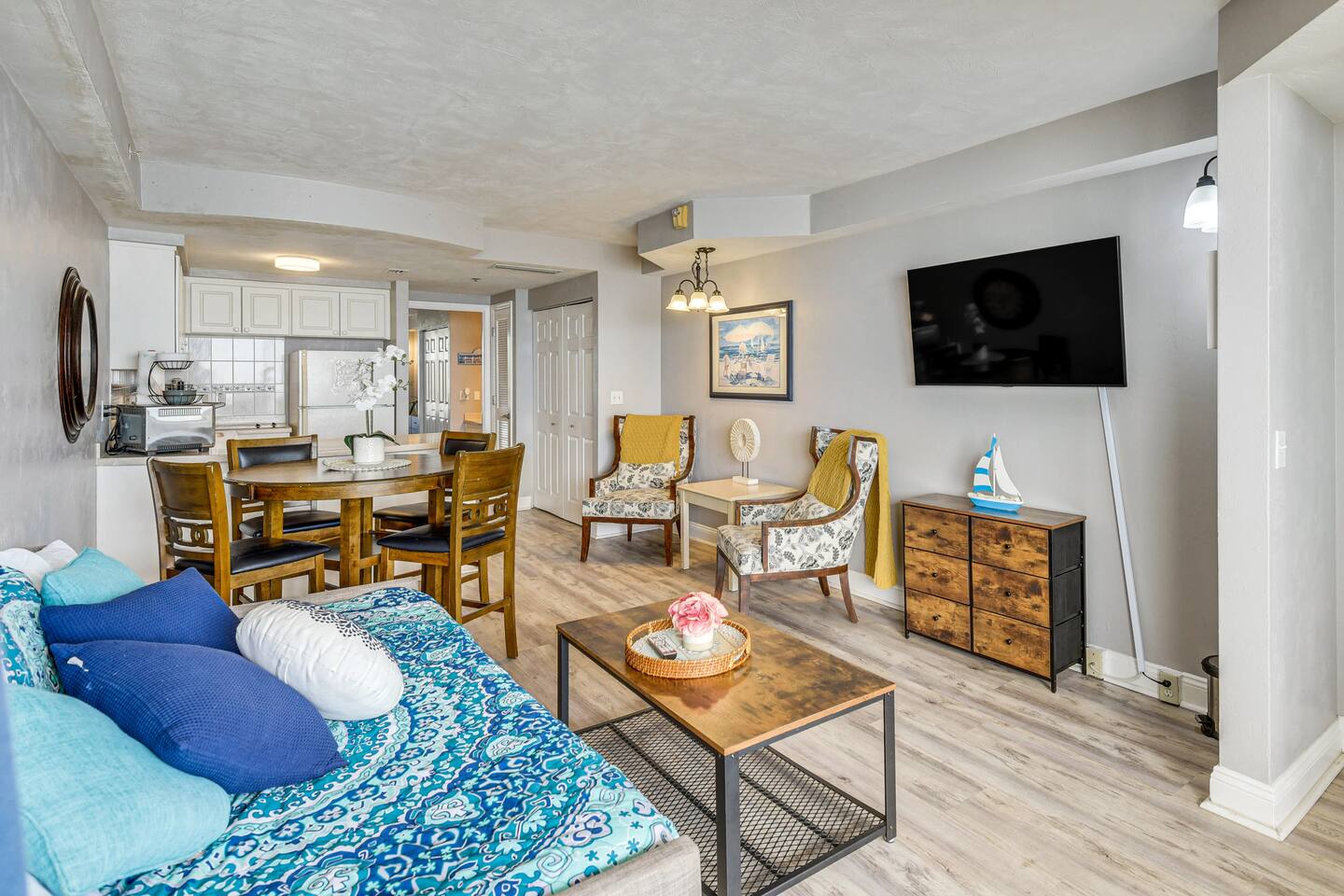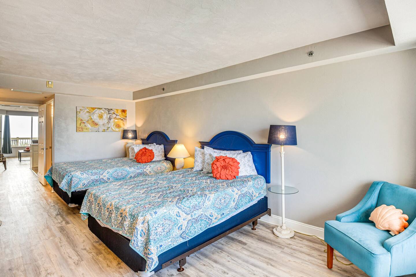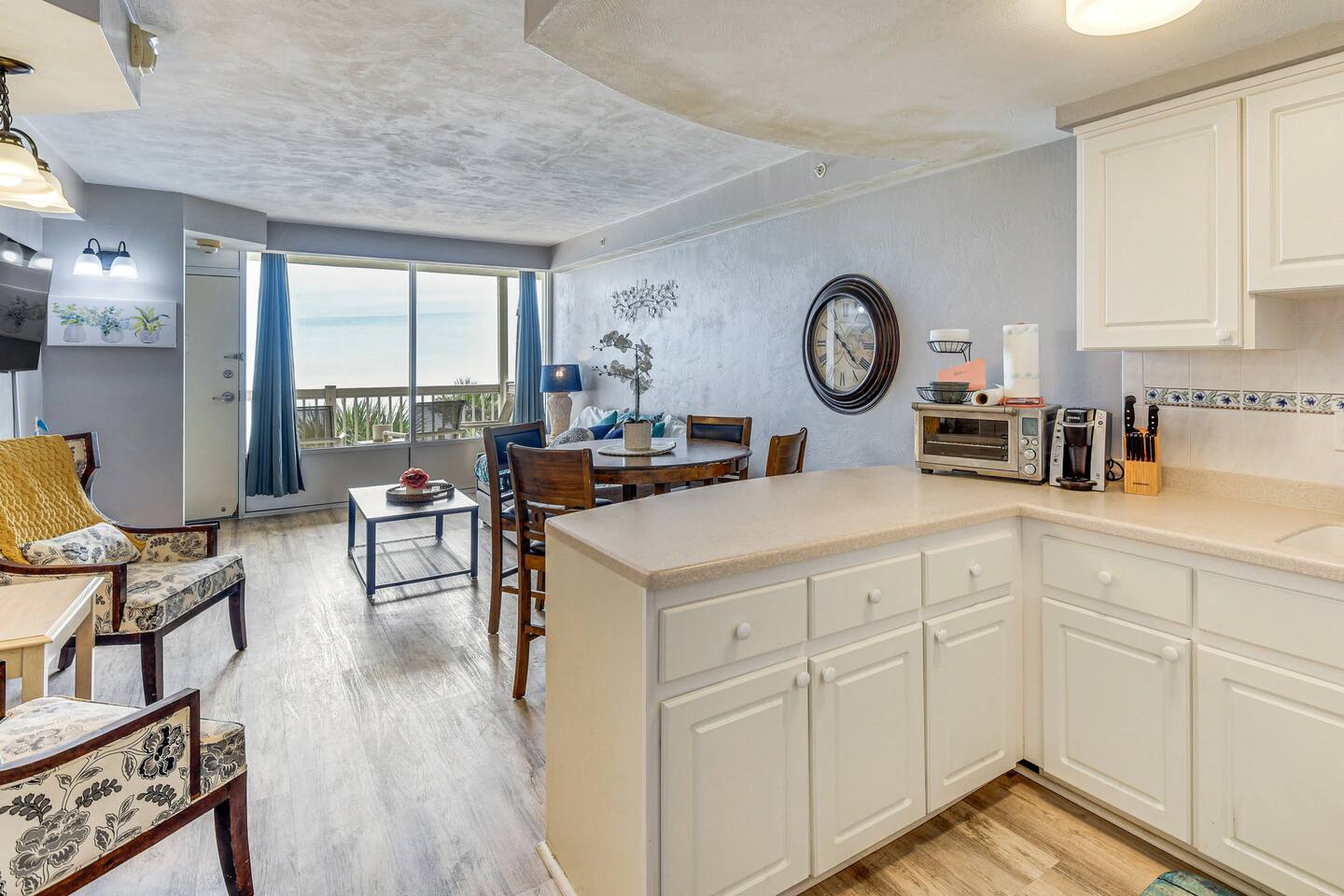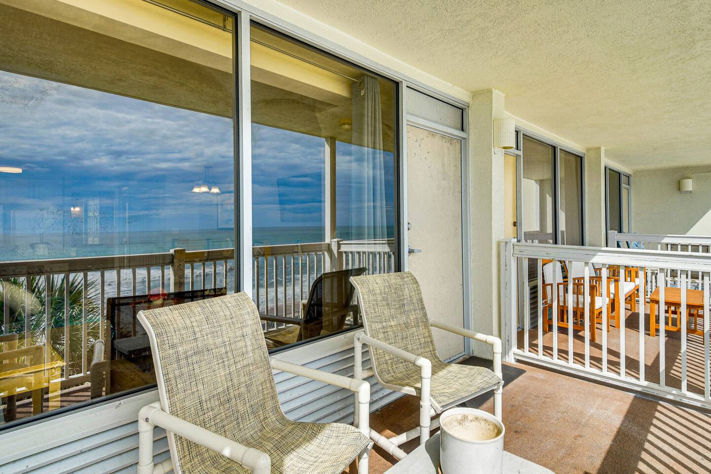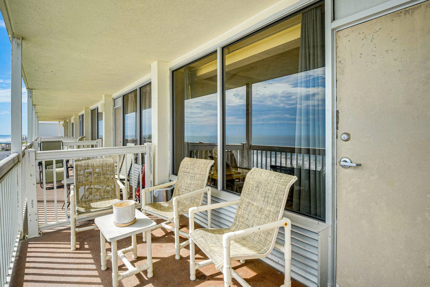 Wake up to breathtaking ocean views from the private, 3rd-floor balcony of our beautifully renovated 1-bedroom condo. This retreat is the perfect Florida getaway for families or groups of up to six guests. **Sleeping Arrangements:** * Two comfortable queen beds * A cozy daybed with two twin mattresses **Living & Entertainment:** * Relax in the living room with a 65" Smart TV * Enjoy a movie on the second Smart TV in the bedroom * Free high-speed Wi-Fi **Kitchen & Dining:** * A fully equipped kitchen to prepare meals, including: * Keurig coffee maker * Blender * Air fryer * Rice cooker **Comfort & Convenience:** * Central Air Conditioning * Keyless entry for easy, secure access * Beach essentials provided: chairs, towels, and umbrellas
