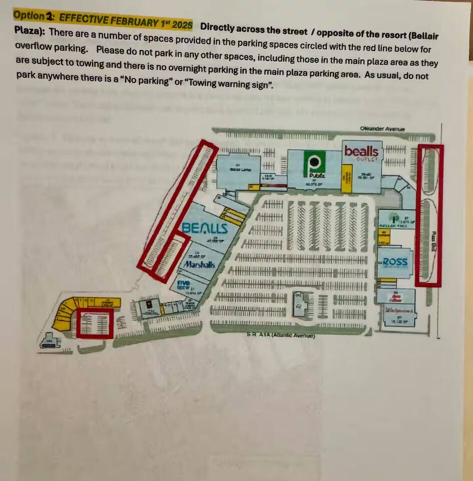 There is public transportation available with stops all along A1A, the main visitor route. The Bellair Plaza is across the street (walk to it) for groceries, pharmacy, liquor store as well as several department stores